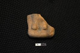 | Description / विवरण | Lower part of a terracotta plaque depicting two feet. The object is red in colour with smooth surface. |