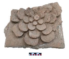 | Description / विवरण | It is a broken decorated terracotta plaque having carved with four rows petalled blooming flower and pistal is prominently seen. The upper portion of the plaque has broken. |
