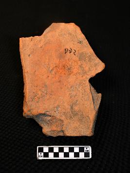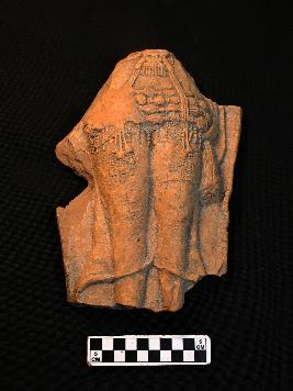 | Description / विवरण | A terracotta plaque, showing a lower part of a human figurine. Waist is narrower but expanded in heap area. There is a girdle surrounded the lower waist portion. The body above waist and feet are missing. Folds of drapery is seen at her both sides. The colour of the object is red with smooth surface. |
