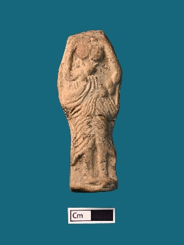 | Description / विवरण | A terracotta plaque depicts a headless female figure, covered with folded drapery. Breasts are clearly visible . Her right hand delicately holds the drapery near her breast, while her other hand does the same near her belly. The figurine stands upon a pedestal. |