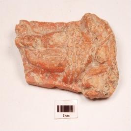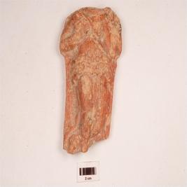 | Description / विवरण | Terracotta female human figurine, on plaque, headless, two hands, two breast, left breast slightly damaged, narrow waste, waste band, drapery visible, left leg slightly band, neck and hands decorated with ornaments. |
