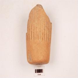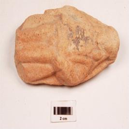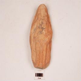 | Description / विवरण | Human figurine on plaque with face, body, legs upto feet visible, features of face not clear, two hands, one hand resting on waste, two ear ornaments also visible, traces of red slip on surface. |