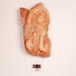 | Description / विवरण | Human figurine, handmade, depcting mother and a baby in her hand, both headless, portion below waste also broken, two prominent breast, bangles on hand, hands and legs of baby and ornaments on neck visible, red slip on surface, made with well levigated clay. |