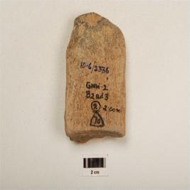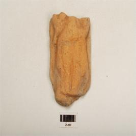 | Description / विवरण | Fragment of terracotta human figurine made on plaque depicting left hand placed on abdomen and right hand holding a object incised naval with a girdle on waist, slender legs and feet is missing, upper portion of body is missing, Ill fired, medium fabric and dull red wash. |