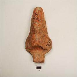 | Description / विवरण | A terracotta human figurine without head, necklace and applique decoration in the body, features of the figurine are not clearly visible, conical at one end with decoration well baked, medium fabric with traces of dark red slip. |
