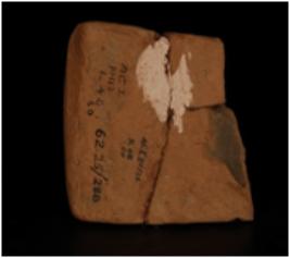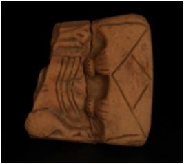 | Description / विवरण | A fragment of a terracotta mahishasur mardini plaque decorated with incised designs and upper portion of plaque is missing. |