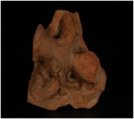 | Description / विवरण | A terracotta defaced male bust with applique necklace and given a wash treatment in buff colour. |