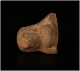 | Description / विवरण | A terracotta female bust with bun shaped headdress and prominent breast. |
