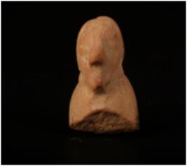 | Description / विवरण | A terracotta human bust with prominent headdress. Facial features are improminent with angular eyes, slit mouth and prominent nose. |