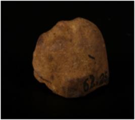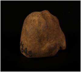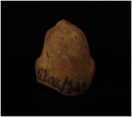 | Description / विवरण | A terracotta human balled head. Facial features are improminent with angular eyes, slit mouth and prominent nose and given a slip treatment in buff colour. |