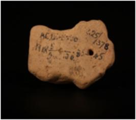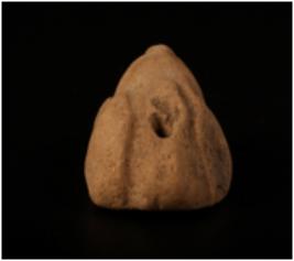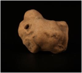 | Description / विवरण | A terracotta human head with prominent headdress and a hole on the headdress and given a wash treatment in buff colour. |