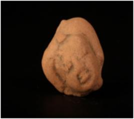 | Description / विवरण | A terracotta human head with fan shaped headdress. Facial features are improminent with angular eyes, slit mouth prominent nose and lips and given a wash treatment in red colour. |
