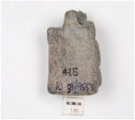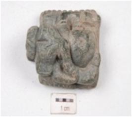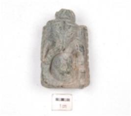| Description / विवरण | A miniature grey colour Ganesha on a plaque, made on basalt has incised crown, eyes, hands and a curved trunk, incised floral design on back side of panel and prominent pot belly. |
