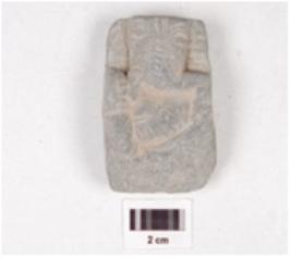 | Description / विवरण | Probably a Ganesha figurine has two eyes, tilak on forehead, trunk bent towards left, one tusk on right side, pot belly and two hands made on a rectangular plaque. |