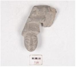 | Description / विवरण | A plaque has human face with a headdress, eyes and eyebrow, broad nose, split mouth, oval face, portion of decorative panel on top attached with headdress and smooth surface. |