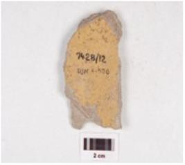 | Description / विवरण | Broken plaque has human figurine with necklace and garments decorated with geometric design. |