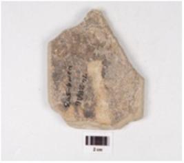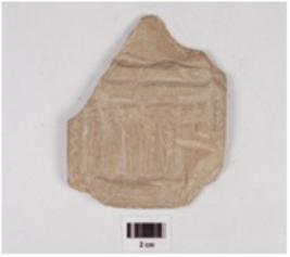 | Description / विवरण | Probably a broken fragment of railing motif has vertical and horizontal lines on obverse and plain reverse. |