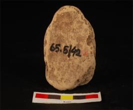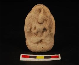 | Description / विवरण | Moulded plaque image of seated buddha features are less visible due to weathering. Crown on head, flowing garments padmasana posture on a lotus throne. Right hand near the chest, left hand holding unidentified object resting on lap ornaments on neck and waste, ill fired, coarse tempering meterial used. |