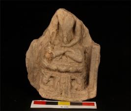 | Description / विवरण | Reverse is chipped off on obverse deity is seating in padmasana on lotus, position of left hand shows that the image is of buddha, right leg is eroded. |