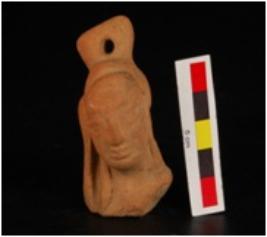 | Description / विवरण | Handmade terracotta plaque human head of female figurine, fan shaped headdress, applique lace, drappery is suggested by groove line, facial features are not clear but suggested by embosed lines. Transverse hole on headdress. Treated with red colour. |