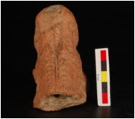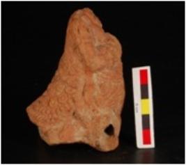 | Description / विवरण | Terracotta handmade hand, holding a throne. The fingures of the hand is shown by incised lines. A bracelet with incised decoration. The hand shown by incised designs. Armlet also visible. The throne have a projection on top, object is ill fired. Traces of red slip visible on the surface. |