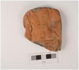 | Description / विवरण | Moulded terracotta plaque of female bust with circular breast. |