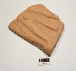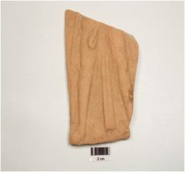 | Description / विवरण | Terracotta plaque depicting leg portion, drapery knot with various folds in middle. |