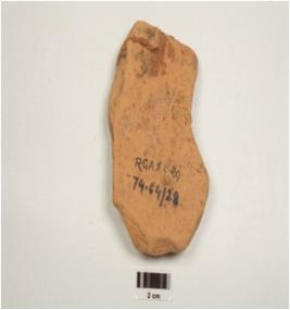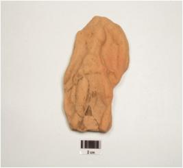 | Description / विवरण | Terracotta plaque depicting female torso, wearing a beaded girdle, pinhole navel, left hand akimbo other hand lowered, wearing drapery, partly damaged cruded figurine and made on single mould. |