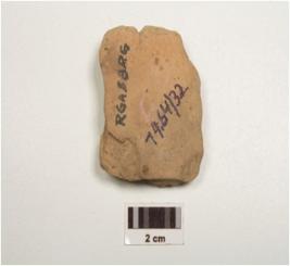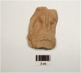 | Description / विवरण | Terracotta plaque depicting female torso, fine fabric, inadequately fire, wearing ornaments including a necklace, beaded bracelet and two stand right hand akimbo and made from a single mould stand. |