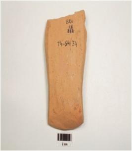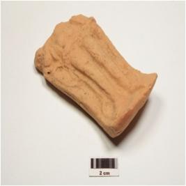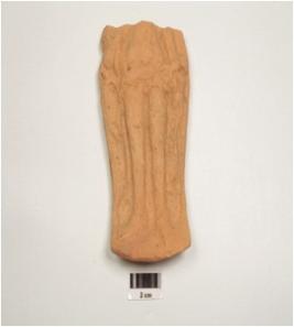 | Description / विवरण | Fragment of terracotta single mould plaque depicting female standing figurine, wearing girdle anklets and bracelets, drapery covered her back, left hand stretched down and right hand akimbo, tose are elonguted and upper portion missing. |