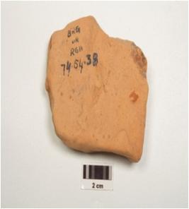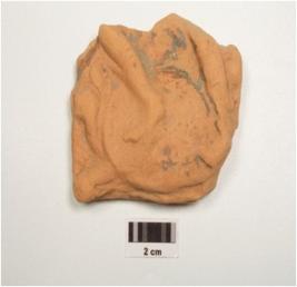 | Description / विवरण | Terracotta plaque depicting human legs, standing on an animal probably tortoise. |