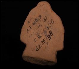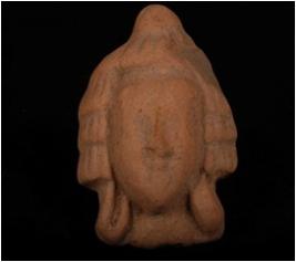 | Description / विवरण | A handmade terracotta human head, decorated with prominent headdress and earings, other facial features are lacking, made with well levigated clay, well baked. |