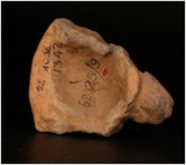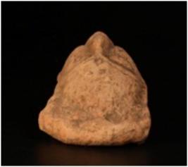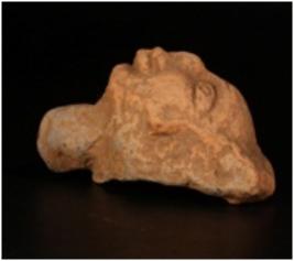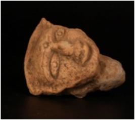 | Description / विवरण | Terracotta moulded crude female head with deep incised eyes, incised eyebrow. Prominent broad thick lips, thick nose circular dow on forehead. Ill fired, gritty clay mixed with husk and dull red in colour. |
