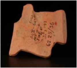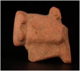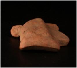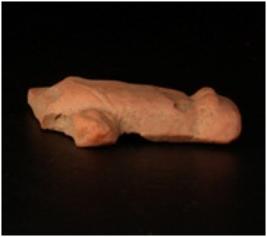 | Description / विवरण | Terracotta moulded fragment of human figurine on plaque from waist to ankle standing on pedestal. Wearing long garment upto ankle with a fold around thigh. Left hand placed on waist. Well baked, well levigated clay with dull red in colour. |