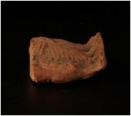 | Description / विवरण | Terracotta moulded fragment of dampati on a plaque, male wearing dhoti with ample folds, drapery marked by incised decoration, girdle with a knot around waist. Female wearing lower garment with incised decoration on drapery, slender legs, thin waist. Well baked, gritty clay and dull red in colour. Head is missing. |