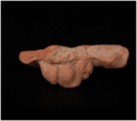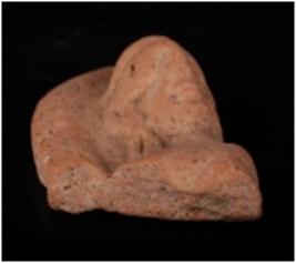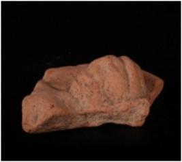| Description / विवरण | Terracotta moulded fragment of human head on plaque with long dangling ear lobs, slit on ear lobs, incised nose, eyes, lips and thin chin. Applique decoration for head dress in a horizontal band . Well baked, gritty clay and red in colour. |