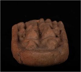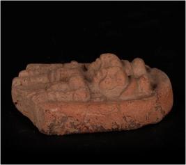 | Description / विवरण | Terracotta moulded fragment of satti satta plaque, both wearing head dress with a circular knot wearing circular ear ornament and incised eyes, nose, lips. Drapery and waist band decorated with incised marks. Satti with circular breast, thin waist wearing lower garment and partly eroded nose . Well baked, gritty clay and dull red in colour. Lower portion missing |