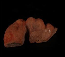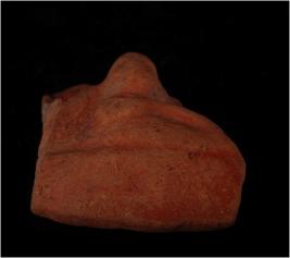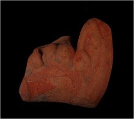 | Description / विवरण | Terracotta moulded bust of female figurine with prominent circular breast, thin slender hands holding bowl. Ill fired, gritty clay with traces of red slip. |