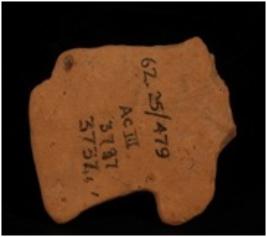 | Description / विवरण | Fragmentary terracotta plaque represents the lower part of the human figurine meaning a drapray. |