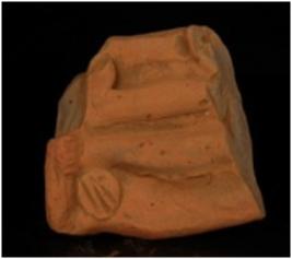 | Description / विवरण | Fragmentary terracotta plaque represents legs of a human figurine. Mere is a circular design with incised lines near the foot. |