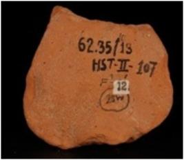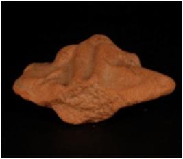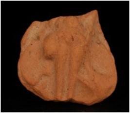 | Description / विवरण | Terracotta fragment of a fragment female figurine pot belly wearing waist band. |
