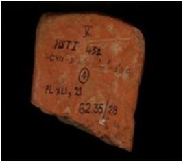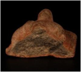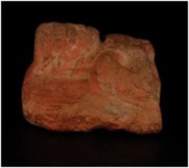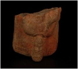 | Description / विवरण | Terracotta moulded plaque depicting male figurine with incised work on back, round stylized hair with incised work on turban. Ornamented on neck lower part of body and one hand is broken One hand is in abhya mudra. |