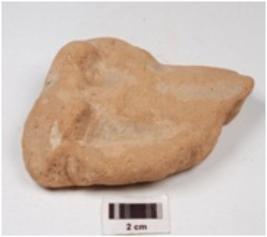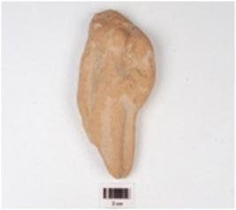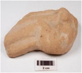 | Description / विवरण | A mould made terracotta figurine of mother with a child, prominent breasts, left hand holding a child, right hand suspended and head portion missing. |