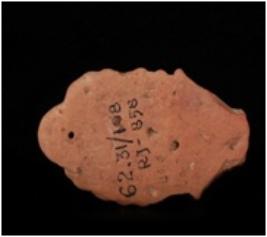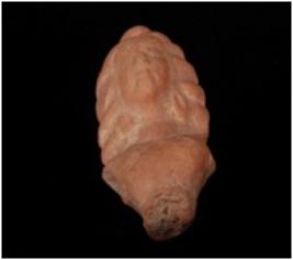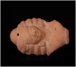 | Description / विवरण | Mould nude terracotta plaque representing the bust of a human with thick ness and lips, long neck, thick hairs with centre parting curly hair locks on the both sides and on ushnisha there is a transverse hole on ushnisha. |