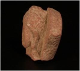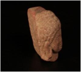 | Description / विवरण | Head portion of a style sculpture with curley hair, elongated ears, facial features are shown by incised lines, third eye on forehead. |