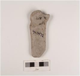 | Description / विवरण | Stone fragment of a humanan figurine standing on a pedestral, both legs are straight and joint together. |