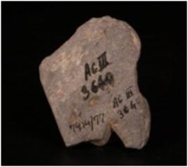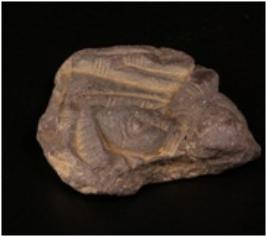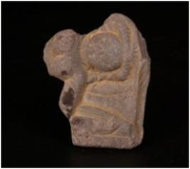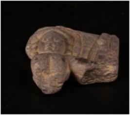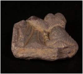 | Description / विवरण | Stone fragment of a female figurine, decorated headdress, facial features and ornaments are shown by incised line. |