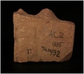 | Description / विवरण | Fragment of carved stone sculpture, unidentify feature. |