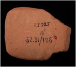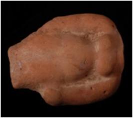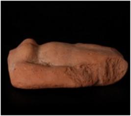| Description / विवरण | Fragmentary mould made terracotta represents a female figurine. It has elongated hands. Prominent breasts. |