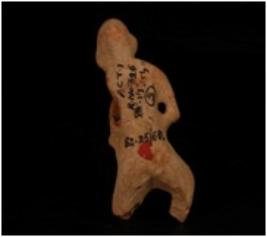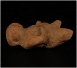 | Description / विवरण | Fragment of terracotta a mould made male figurine. Facial features are obliterated. Right hand rests on her belly and left hand missing. |